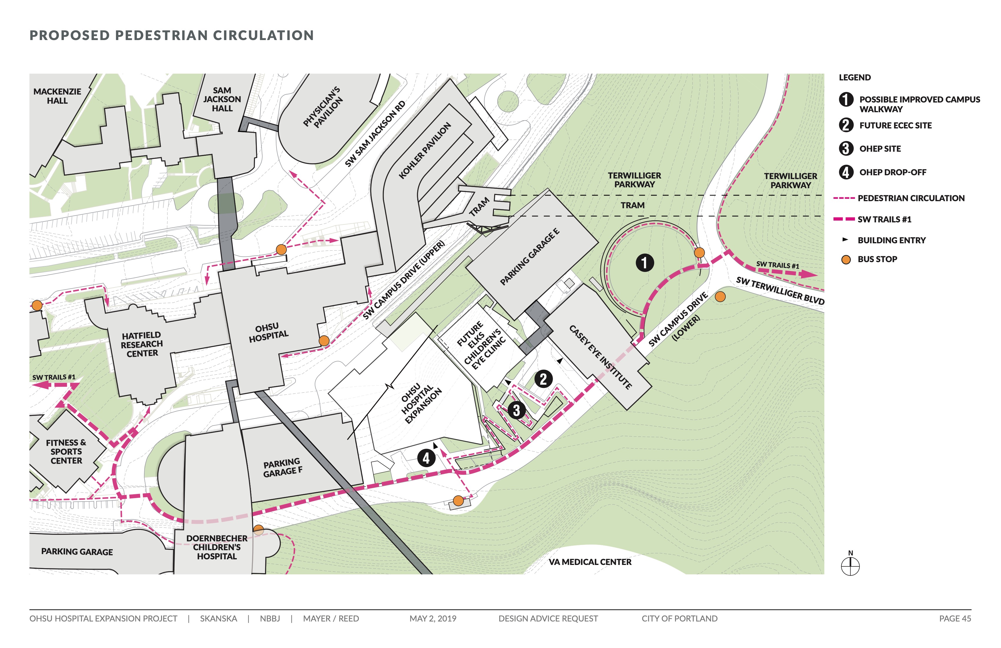 Published May 21, 2019 at 3400 × 2200 in OHSU Hospital Expansion Presented to Design Commission (images) Next → Plan | Site (Pedestrian Circulation)