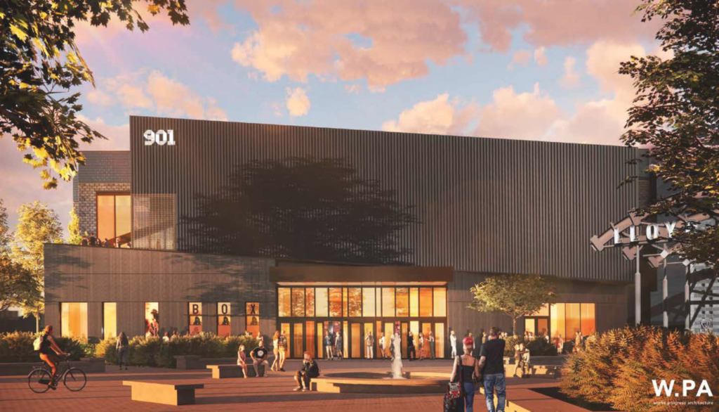 A two story concert and event venue at Lloyd Center is currently under construction after receiving approval from the design commission in 2024. The proposed venue, with a flexible capacity for 2,000 to 4,250 attendees, is approximately 67,000 square feet in size and will include the main event space, a mezzanine, as well as supporting spaces. The building is designed by Works Progress Architecture and co-developed by Monqui Presents and AEG Presents.